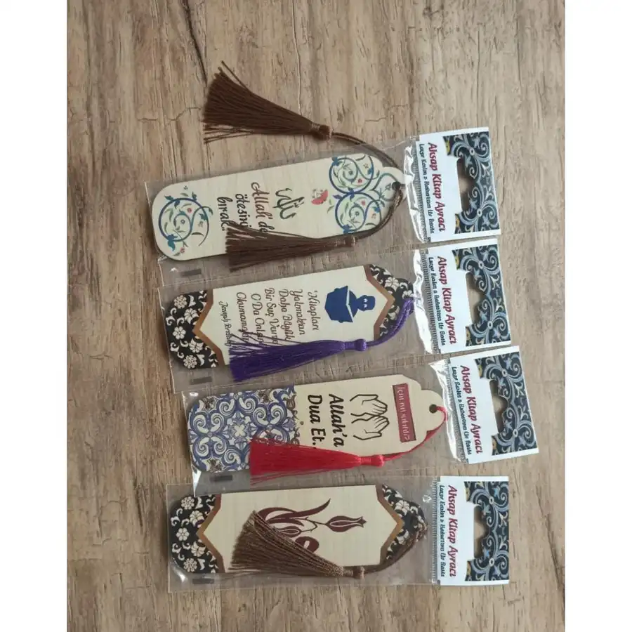 Doğal ahşap malzemeden üretilmiş, mesaj içerikli, püsküllü kitap ayracı. Kitap severlerin vazgeçilmez aksesuarı.