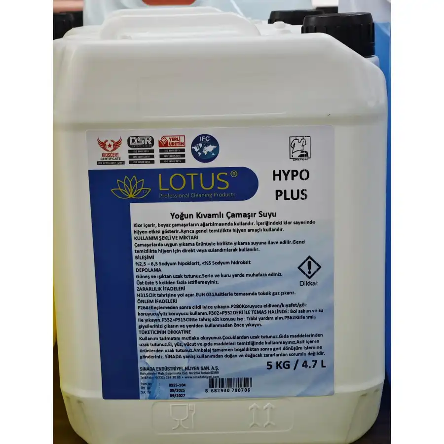 Lotus çamaşır suyu, güçlü formülü ile çamaşırlarınızı beyazlatır ve dezenfekte eder.