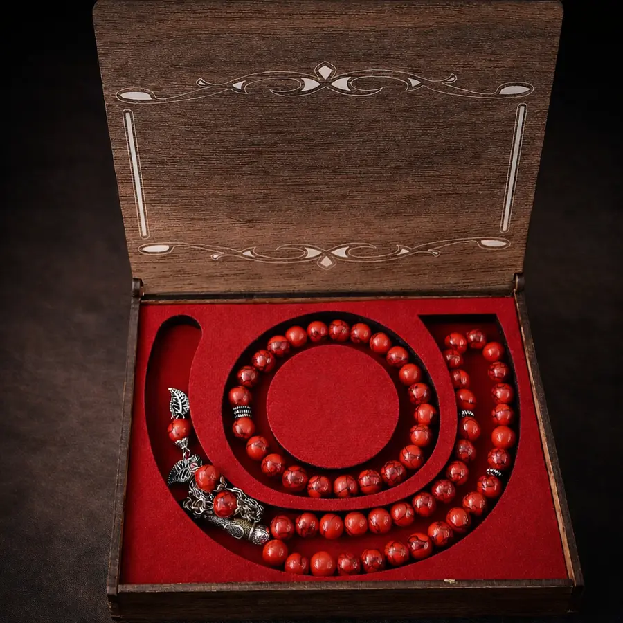Doğal mercan taşından üretilmiş tesbih ve bileklik ikilisi. Ahşap sunum kutusunda hediyelik olarak sunulmaktadır. Sevdiklerinize özel bir hediye için ideal seçenek.