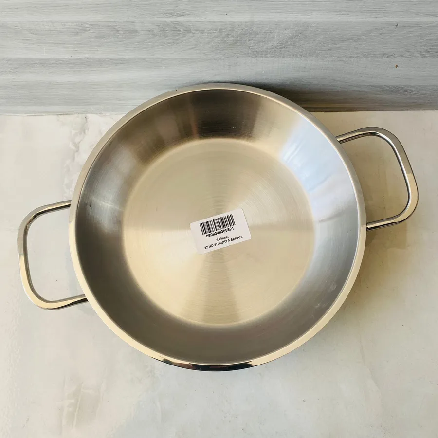 Samira 430 çelik sahan, 22 cm çapında. Yemek pişirme ve servis için idealdir.
