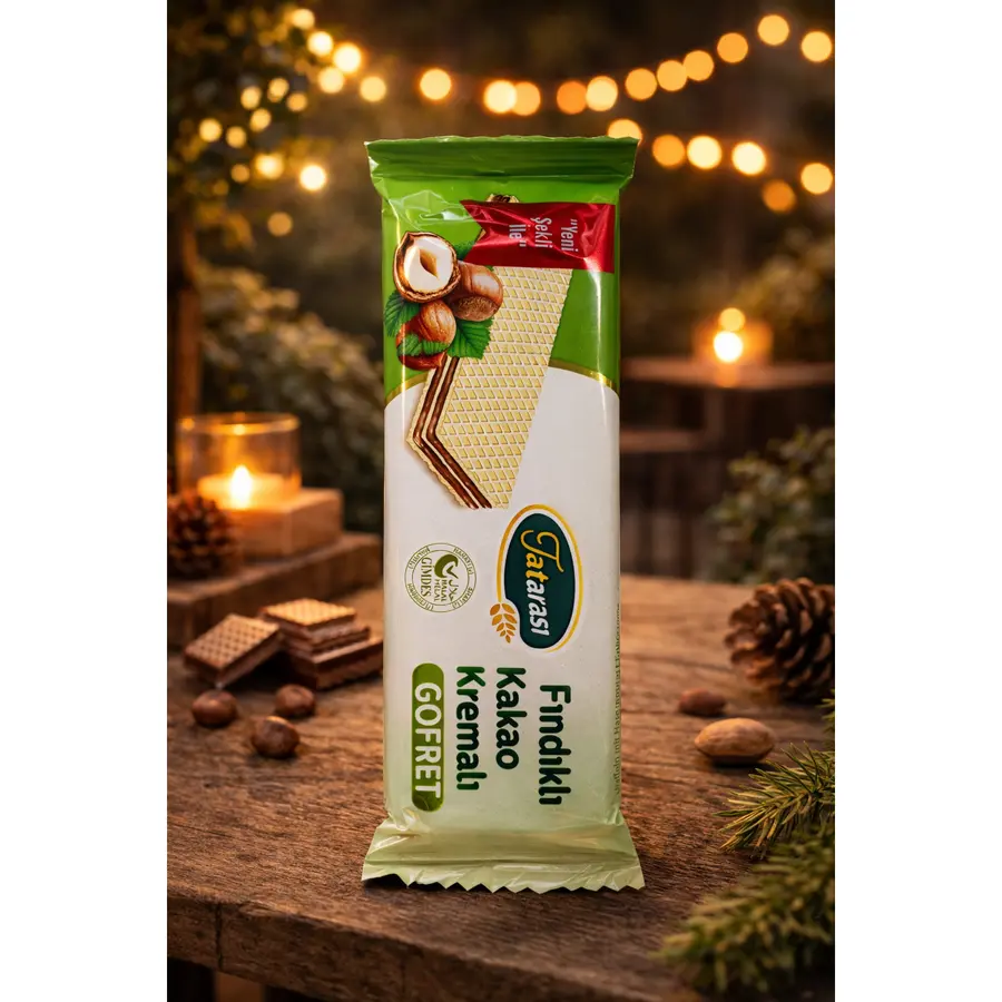 Tatarası'nın sevilen gofret serisinden fındık kakao kremalı versiyon. Kadarşır gofret katmanları arasına gıklı fındık kremalı kakao harmanı gızlenmış. Atıştırmalık için mükemmel 35 Gr boy.