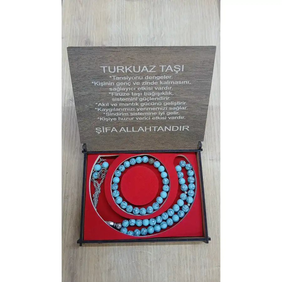 Doğal turkuaz taşından üretilmiş şık bileklik ve kolye takım seti. Turkuaz tonlarıyla dikkat çeken zarif aksesuar.