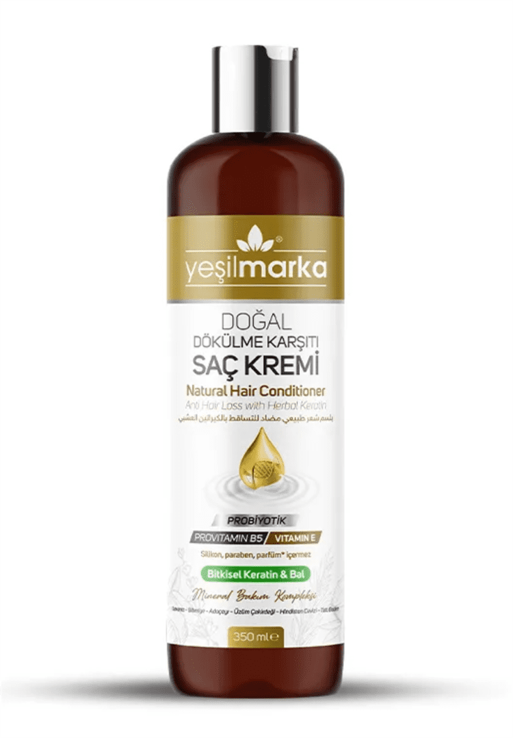 Hassas, zayıf, kırılan ve dökülen saçlar için özel olarak geliştirilen Yeşilmarka Doğal Dökülme Karşıtı Saç Kremi, içeriğindeki zengin bitkisel özler, mineraller ve vitaminler ile saça ipeksi ve parlak bir görünüm kazandırmak, saç tellerinin daha güçlü, sağlıklı ve hızlı uzamasını desteklemek için formüle edilmiştir.