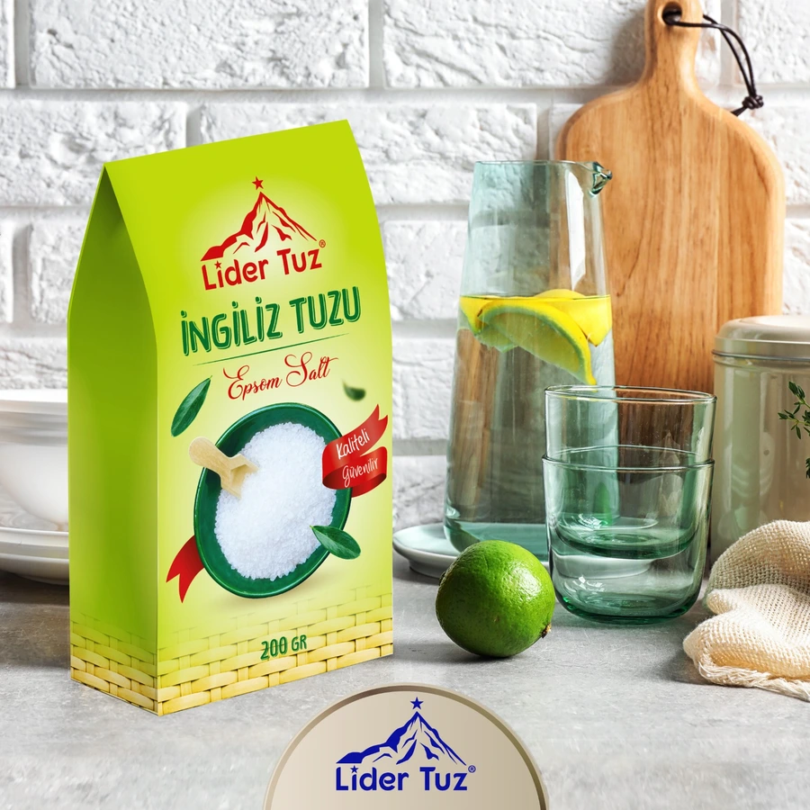 Lider Epsom Tuzu, magnezyum sülfat içeren doğal mineral tuz. Rahatlatıcı banyo ve bakım uygulamaları için ideal.