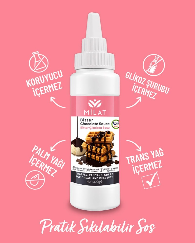 Milat Sütlü Tatlı Sos ile waffle, krep, pankek ve tatlılarınızı zenginleştirin. Gerçek kakao içerir, palm yağı ve glikoz şurubu içermez.